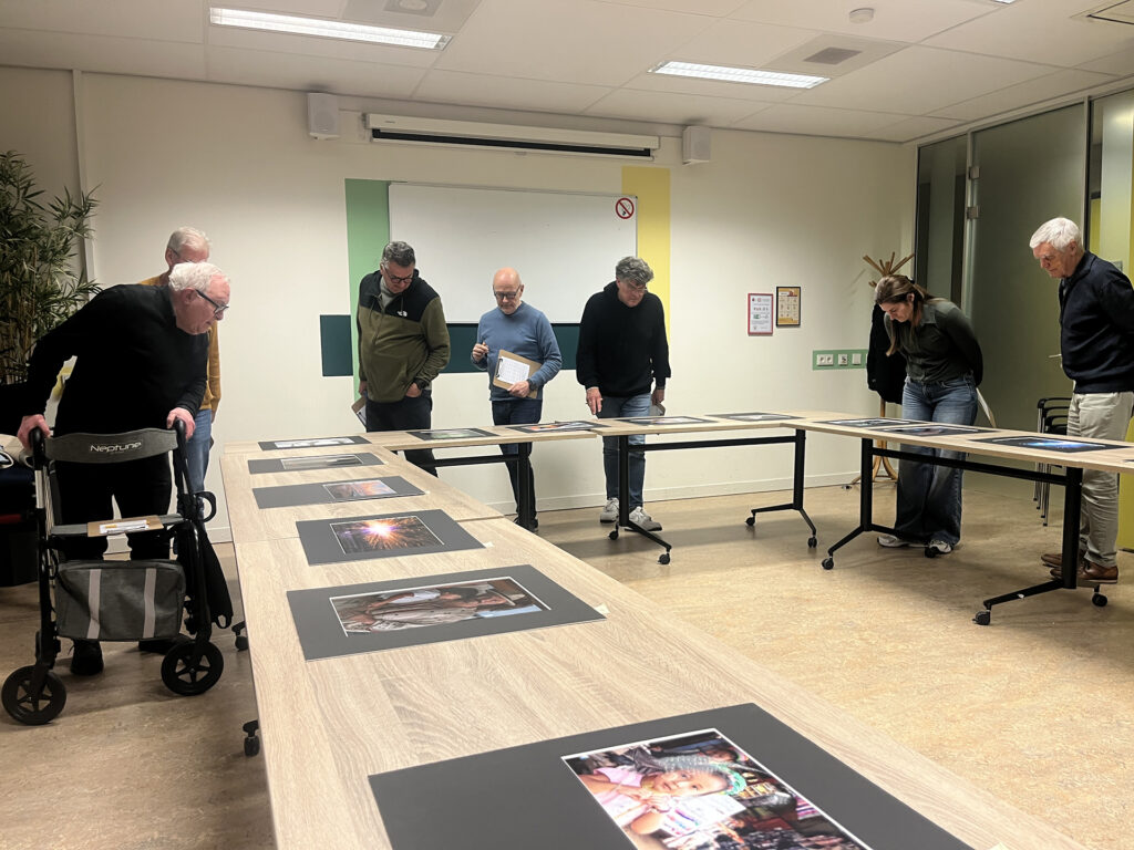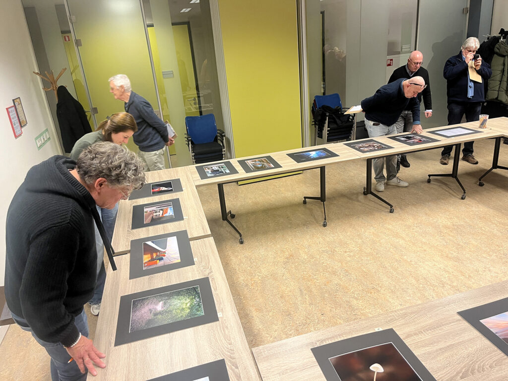De wedstrijdcommissie legt de foto's ad random neer en voorzien ze van een nummer. Alle aanwezige leden (13) beoordelen elke foto met 1, 2, 3, 4 of 5 punten.