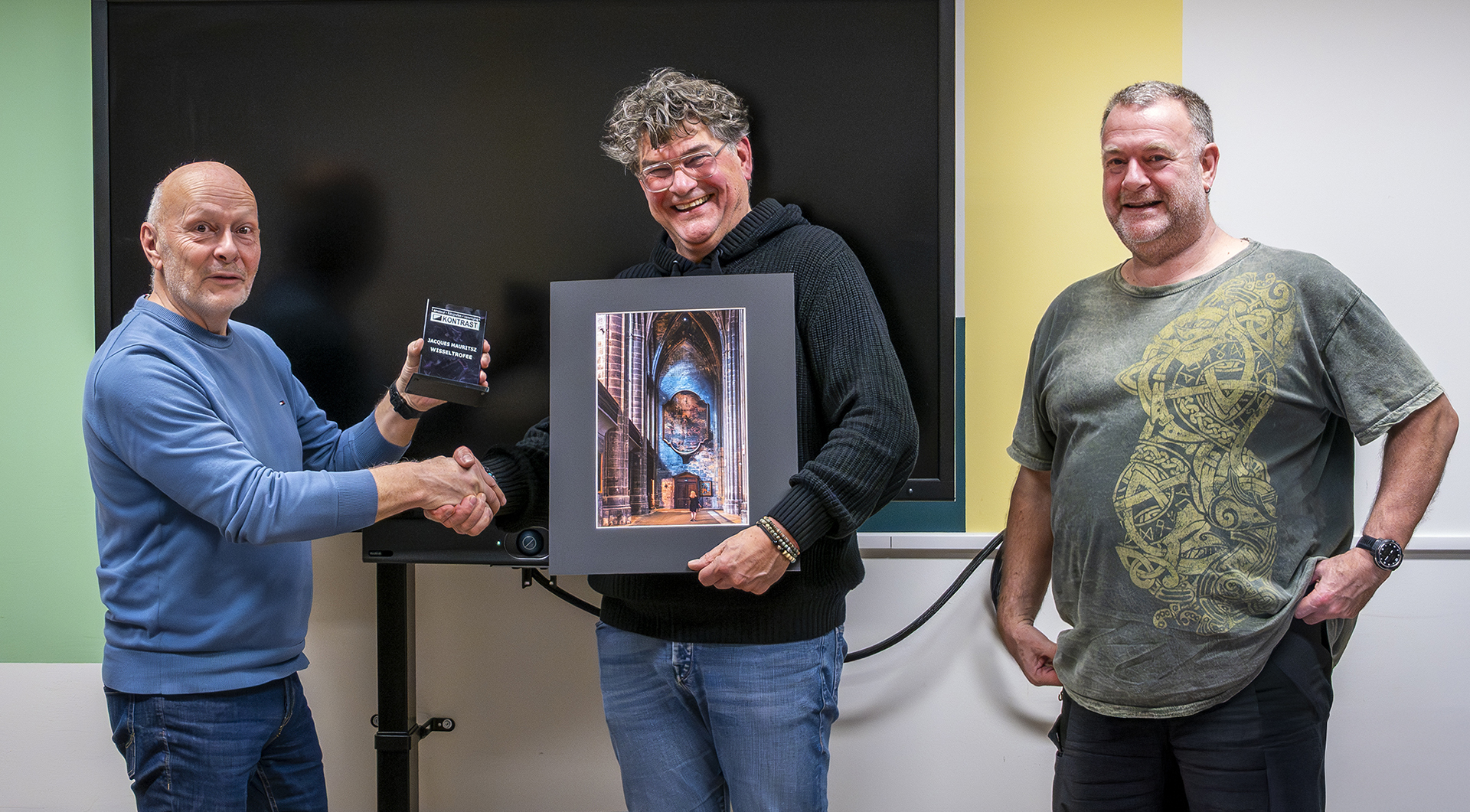 Rechts ziet u de uitreiking van de trofee aan de winnaar van dit jaar, Henk Boelens.